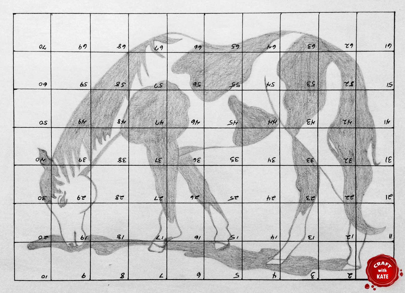 Using the elimination method, from simplest shape to complicated ones, I took one cut out square, found the corespondent number in empty grid and drew exact copy of it. I repeated it 69 times more and when I was done I turned it up side down.End result was amazing. Under no circumstance I would be able to draw a horse like that but when it was broken down to the small chunks and turned up side down suddenly it all became possible.